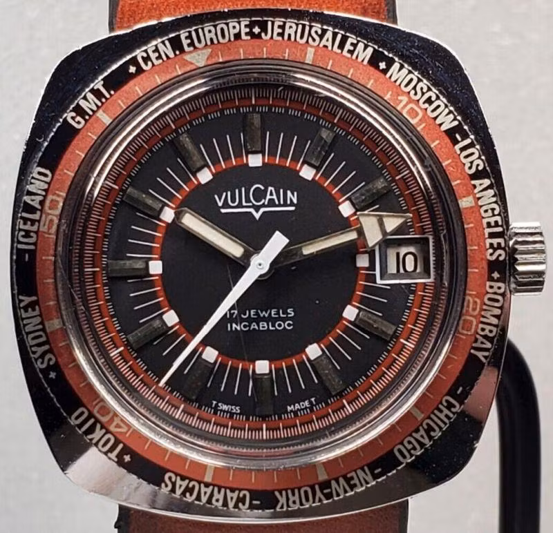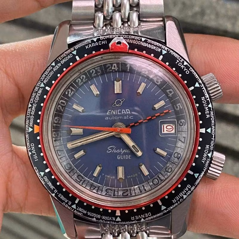 UTC + 9 through +12 are dominated by big cities (Toykyo +9; Sydney +10) and one-of-a-few cities (Noumea +11; Auckland +12), but there are some variations. In UTC + 9k, only Russia-based Raketa replaced Tokyo with Vladivostok (no relation to the famous Russian watch brand Vostok). In UTC + 10, Raketa, Merkur and the infamous Enicar Sherpa Guide replaced Sydney with Magadan, Brisbane and Darwin – Sydney, respectively.