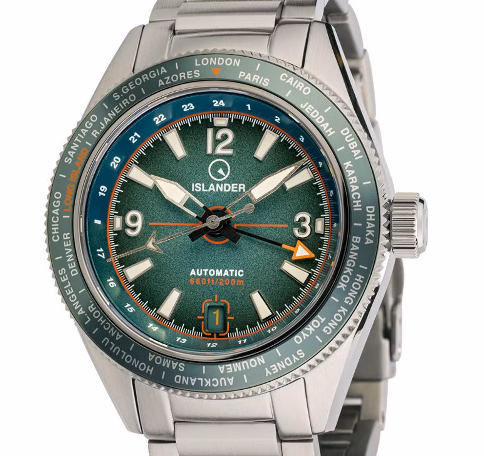 UTC – 1 features Azores and Iceland, but the Hamilton Count-Down Chrono-Matic features the Canaries and Jack Mason’s Pursuit includes PDL, the Ponta Delgada airport on the island of São Miguel, in the Portuguese archipelago of the Azores.