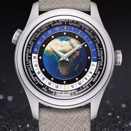 We talked about movements and cities, but can’t forget that the dial is an important element of world timer watch style. We’ve already seen some awesome dial artwork in the Patek Philippe 5231G and Omega Aqua Terra World Timer. Let’s wrap up with a little more world timer dial art, namely the Vulcain Cloisonne: The World, a Canada Cloisonne clone by S. Leung, and the Montblanc Star Legacy Orbis Terrarum.