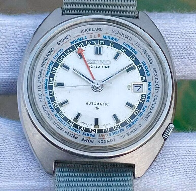 UTC – 10 is mostly Honolulu and UTC – 9 is mostly Anchorage. The Seiko 6117-6400 (both pre and post 1972), as well as others, use Dawson for UTC – 9. Gambier, Marquises and Juneau also make appearance in UTC – 9. At certain points, the time zones for Hawaii and parts of Alaska were the same. For more details on Alaska time zone history, check out the Alaska Historical Society’s excellent article, “Keeping Time in Alaska.”